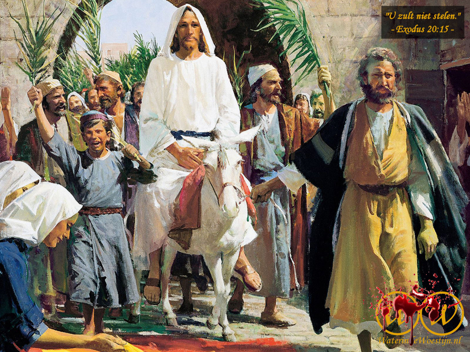 op een ezelsveulen, het jong van een ezelin.”